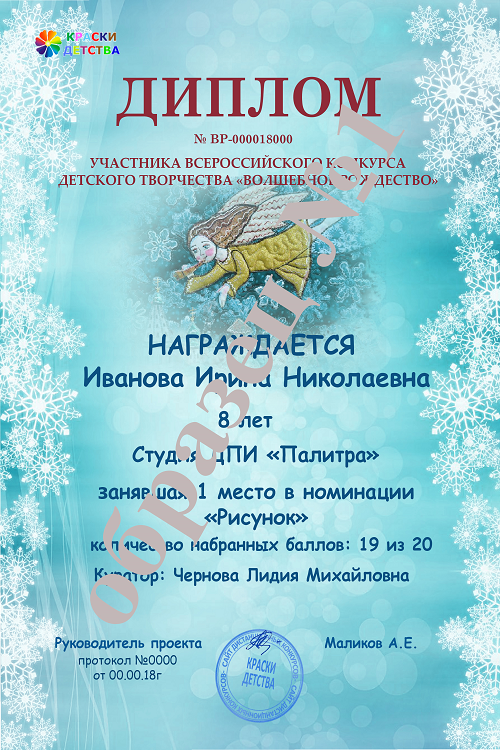 Утром ёлку наряжали, Т. Маршалова Рождество-особенный праздник и сказочное время, пропитанное чудесами и волшебством.С давних времён на Руси с нетерпением ждали Рождество. А когда оно наступало, праздновали его с большим весельем, песнями, переодеваниями. В этих действиях принимали участие и большие и маленькие. Особенно радовались дети. Они ходили по домам и колядовали. В Рождество, как и на Новый год, принято накрывать богатый стол. Праздничное меню и праздничное убранство стола, наряженная елка и подарок-сюрприз — вот атрибуты сегодняшнего Рождества. Рождество- семейный праздник. Принято выходить с детками гулять, кататься на коньках, играть в снежки, строить снежную бабу, рисовать на снегу. Главное, что семья собиралась вся вместе. А еще считается, что в ночь Рождества исполняются все желания, и слова обретают некую магическую силу. Поэтому в этот праздник обычно занимаются гаданием. Это очень интересное занятие, в котором принимают участие и дети. Наши предки были уверены, что Рождественская ночь – лучшее время для того, чтобы узнать будущее. Ждем рисунки и поделки детей на тему Рождественских праздников на Всероссийский конкурс детского творчества "Волшебное Рождество". УЧАСТИЕ + ДИПЛОМ = 60 РУБЛЕЙ!! Образцы дипломов конкурса "Волшебное Рождество"(для увеличения наведите курсором на диплом)